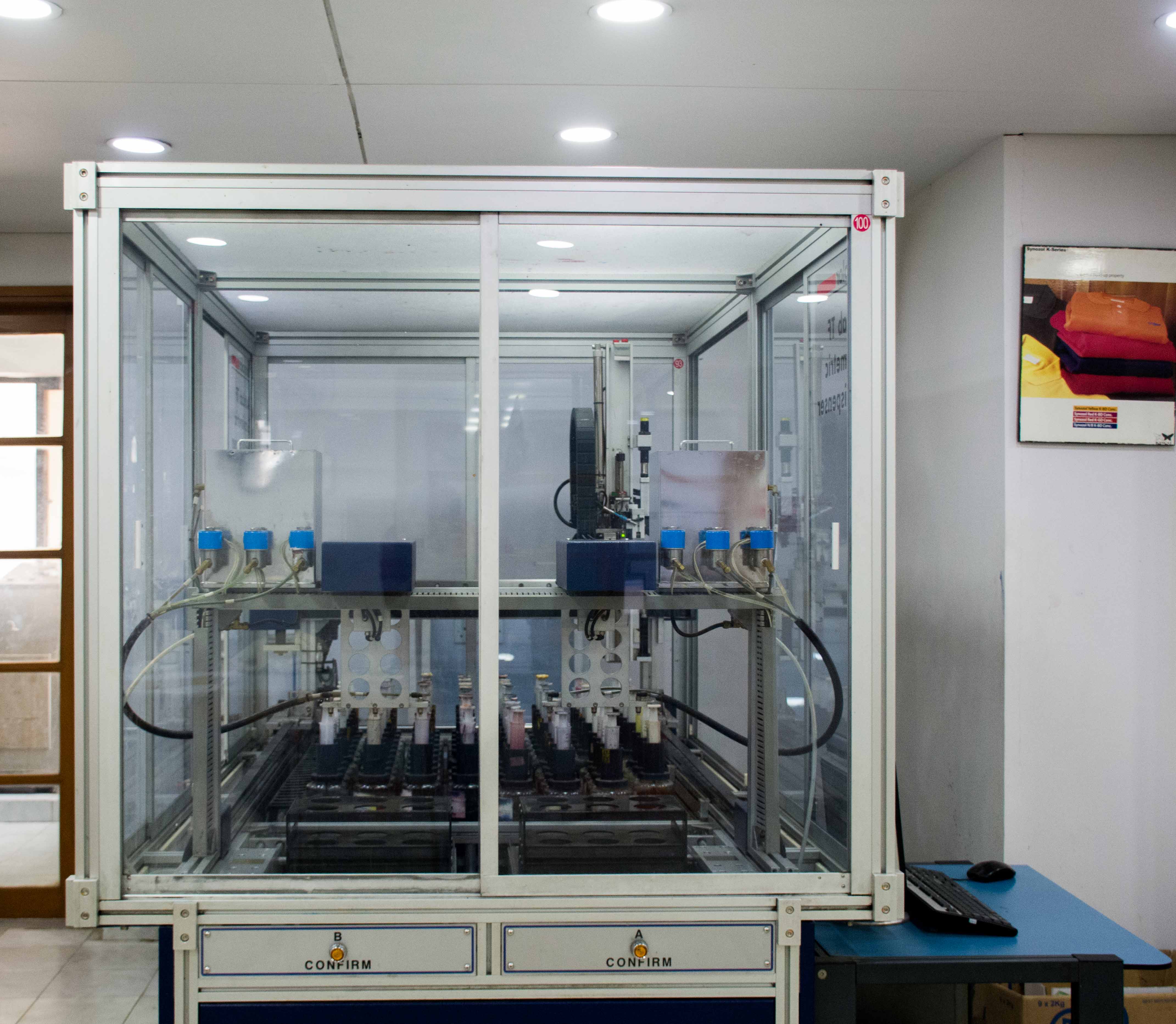 Automation is the key to success in all the processes and dyeing lab of Al-Abbas Fabrics is equipped with fully automatic machines starting from solution making to color dispensing till lab dyeing all machines are fully automated.